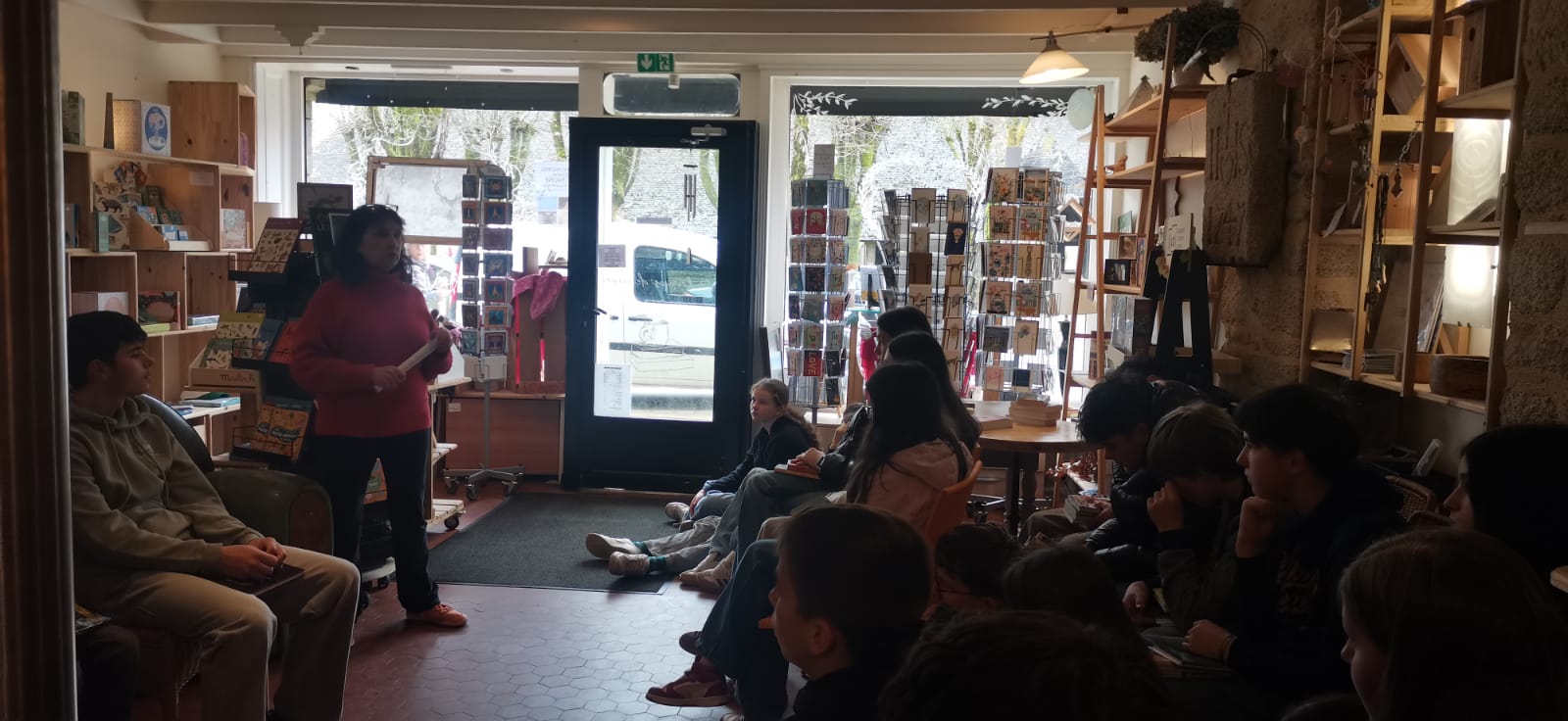 Un moment de lecture dans le gymnase |